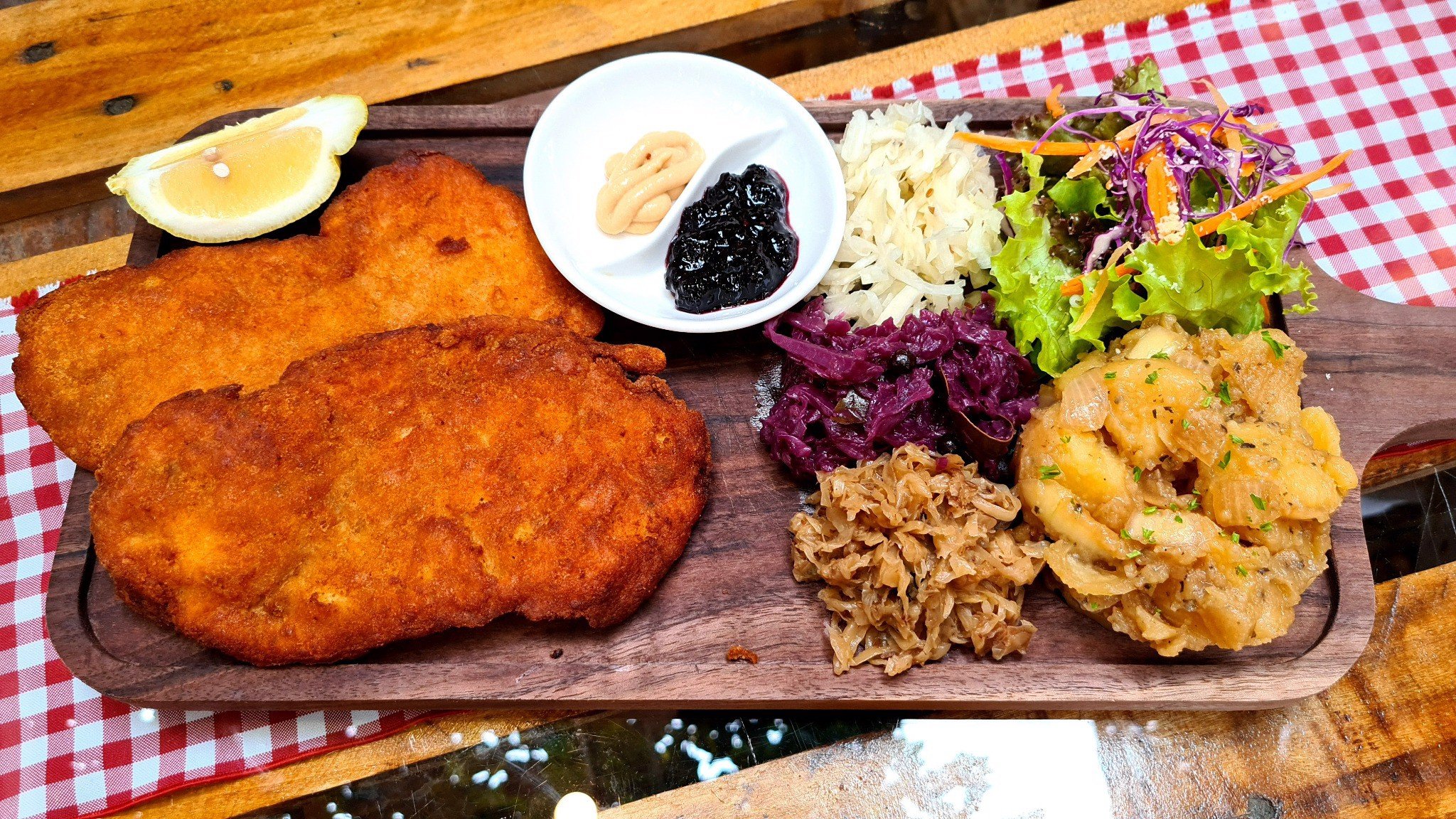 Schnitsel là món ăn được chế biến từ thịt lợn hoặc gà được cắt thành từng lát mỏng sau đó nhúng vào hỗn hợp bột, trứng, sữa, sau đó rắc vụn bánh mì lên trên rồi thả vào chảo chiên ngập dầu. Sau khi nấu xong, thành phẩm có màu vàng ruộm, hòa quyện cùng mùi trắng sữa trong bột, khi cắn vào vang lên tiếng rộp giòn tan khó cưỡng.